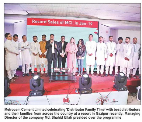 Metrocem Cement Limited celebrating ‘Distributor Family Time’ with best distributors and their families from across the country at a resort in Gazipur recently. Managing Director of the company Md Shahidullah presided over the programme. Published: The Financial Express, Date: 5 February 2019, Page 20 (Trade & Market) Online Link: http://epaper.thefinancialexpress.com.bd/?archiev=yes&arch_date=05-02-2019